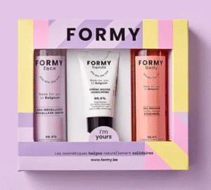 19,00 € Ajouter au panierDécouvrez le Coffret Coups de Cœur FORMY, un trio de soins naturels belges pour choyer votre peau : gel douche fruité, crème mains nourrissante et eau micellaire apaisante. 🌿✨