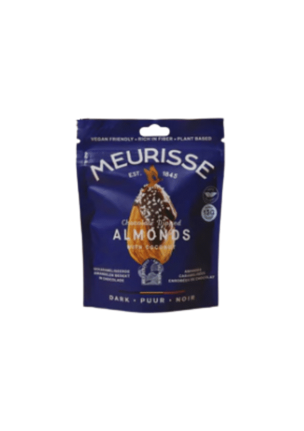 Amandes enrobées de Chocolat Noir & Éclats de Coco – 100 g Meurisse